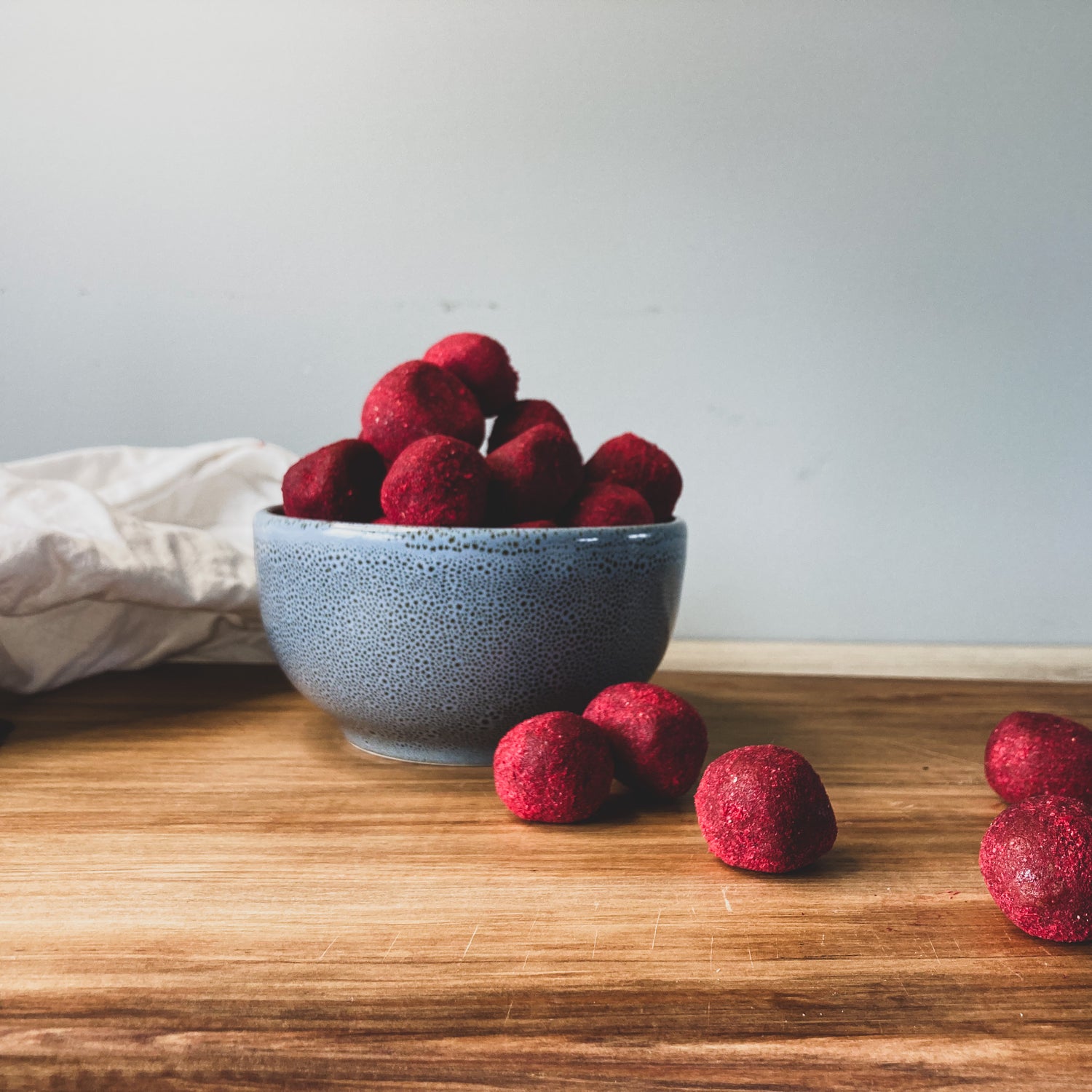 Bites of delicious creamy milk chocolate balls dusted in raspberry. The perfect bite every time.